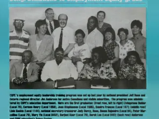 Indigenous, Black and racialized members fought hard to forge their way into the union. In 1991, CUPE appointed its first ever anti-racism coordinator, Harminder Singh Magon, and established the employment equity leadership training program for Indigenous, Black and racialized (referred to then as “Native and visible minority”) members.