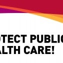 • CUPE members holding "I <3 Public Health Care" signs